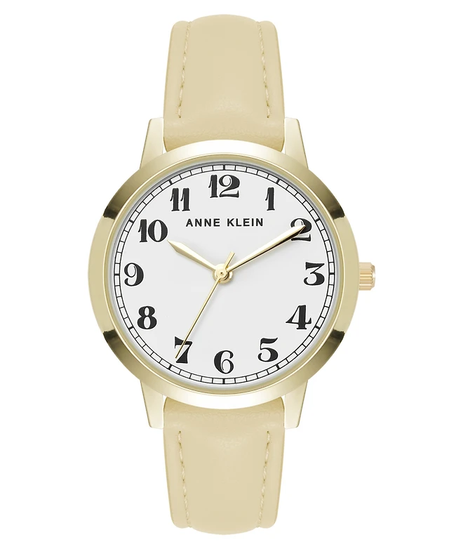 Anne Klein Women's Quartz Casual Polyurethane Leather and Gold-Tone Metal Alloy Boyfriend Watch