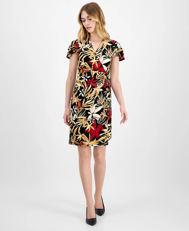 Anne Klein Women's Faux-Wrap Flutter-Sleeve Print Dress