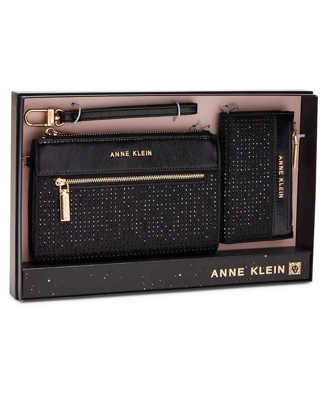Ak 2 piece gift set with rhinestone zip clutch and card case