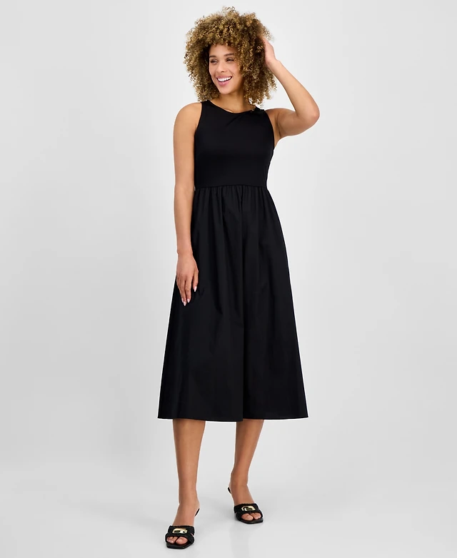 Anne Klein Women's Sleeveless Mixed-Media Midi Dress
