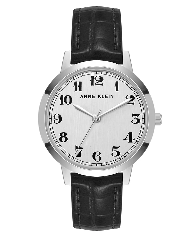 Anne Klein Women's Quartz Casual Black Polyurethane Leather and Silver-Tone Metal Alloy Boyfriend Watch, 34mm