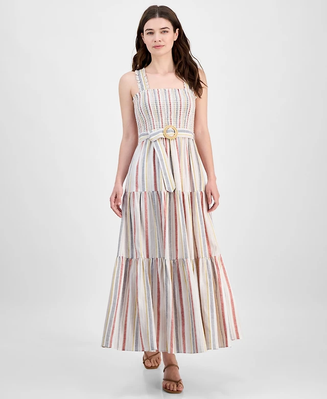 Anne Klein Women's Striped Smocked-Bodice Tiered Dress