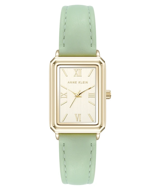 Anne Klein Women's Quartz Casual Mint Polyurethane Leather and Gold-Tone Metal Alloy Watch, 25mm