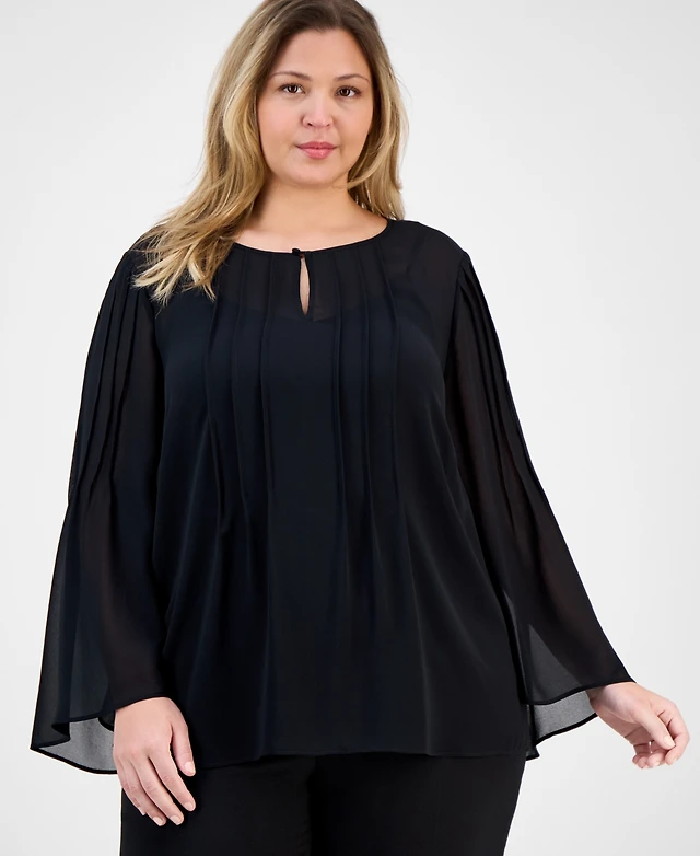 Anne Klein Plus Chiffon Pintuck Flutter-Sleeve Blouse