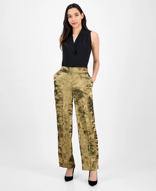 Anne Klein Petite Metallic Crepe Wide-Leg Pull-On Pants