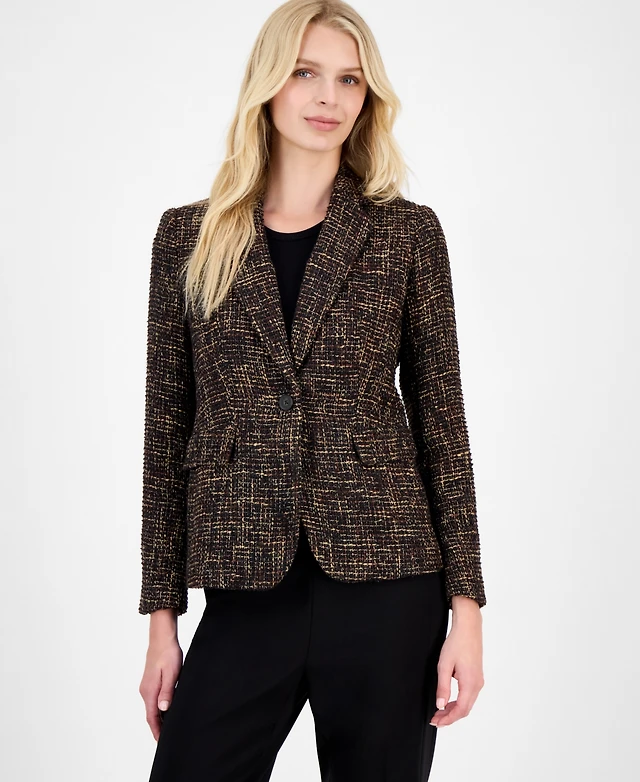 Anne Klein Women's Tweed Notch-Collar One-Button Jacket