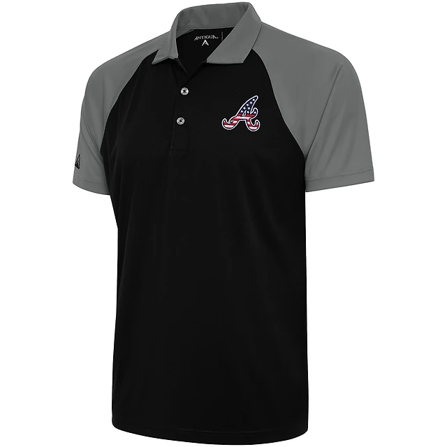 Men's Antigua Black/Steel Atlanta Braves Patriotic Nova Polo