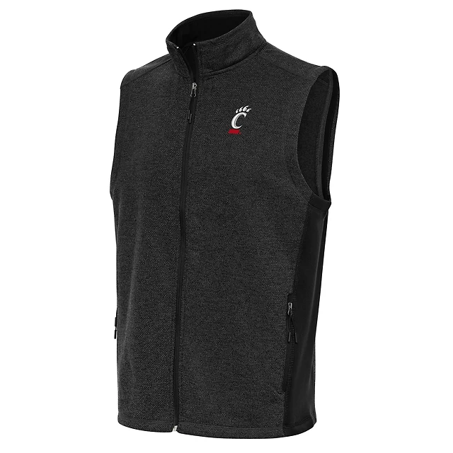 Men's Antigua Heather Black Cincinnati Bearcats Course Full-Zip Vest