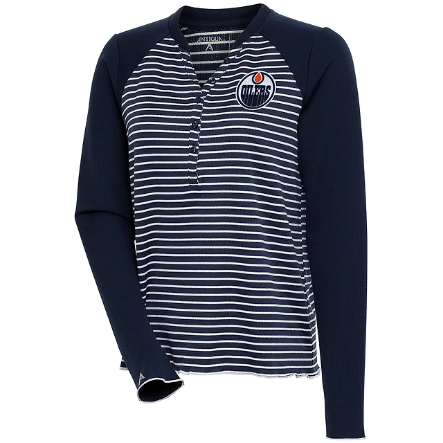 Women's Antigua Navy Edmonton Oilers Maverick Henley Long Sleeve T-Shirt