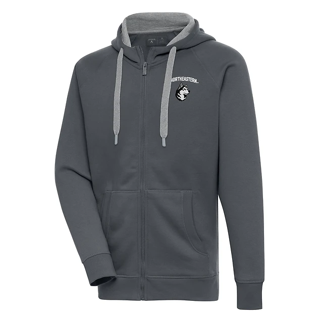Men's Antigua Charcoal Northeastern Huskies Victory Full-Zip Hoodie