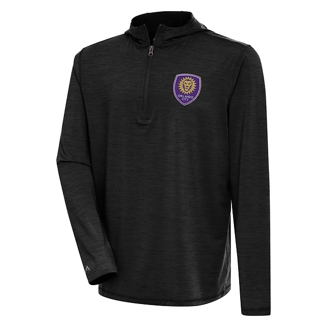Men's Antigua Heather Black Orlando City SC Tidy Quarter-Zip Pullover Hoodie