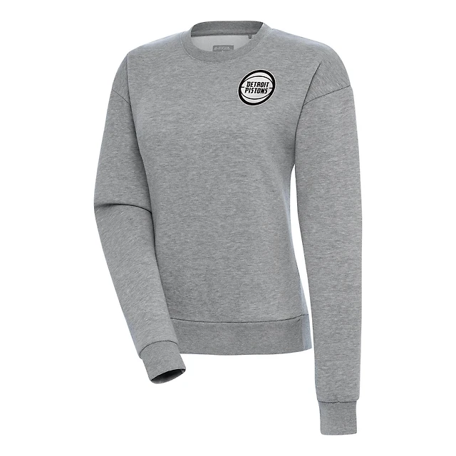Women's Antigua Heather Gray Detroit Pistons Metallic Logo Victory Pullover Sweatshirt