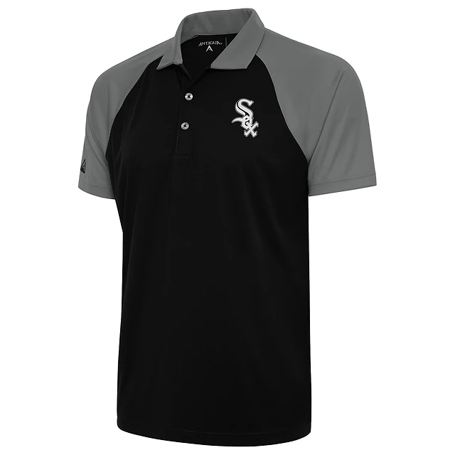 Men's Antigua Black Chicago White Sox Metallic Nova Polo