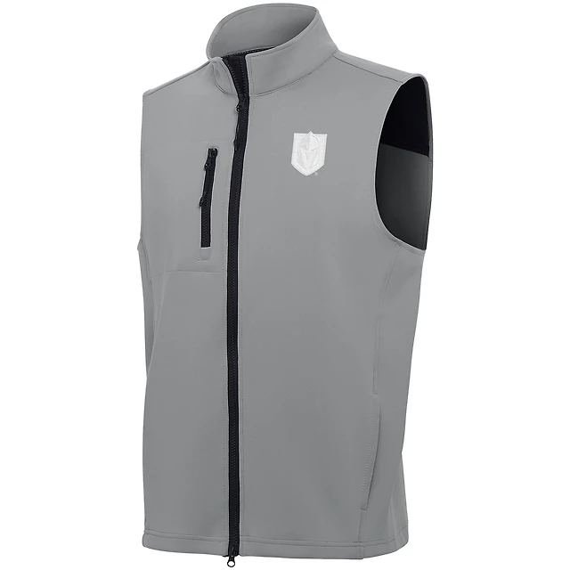 Men's Antigua Gray Vegas Golden Knights White Logo Demand Full-Zip Vest