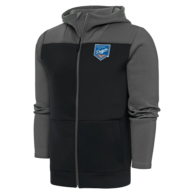 Men's Antigua Steel/Gray Oklahoma City Dodgers Protect Full-Zip Hoodie