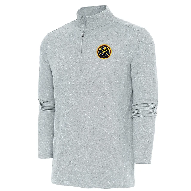 Men's Antigua Heather Gray Denver Nuggets Hunk Quarter-Zip Pullover Top