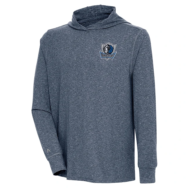 Men's Antigua Heather Navy Dallas Mavericks Saga Long Sleeve Hoodie T-Shirt