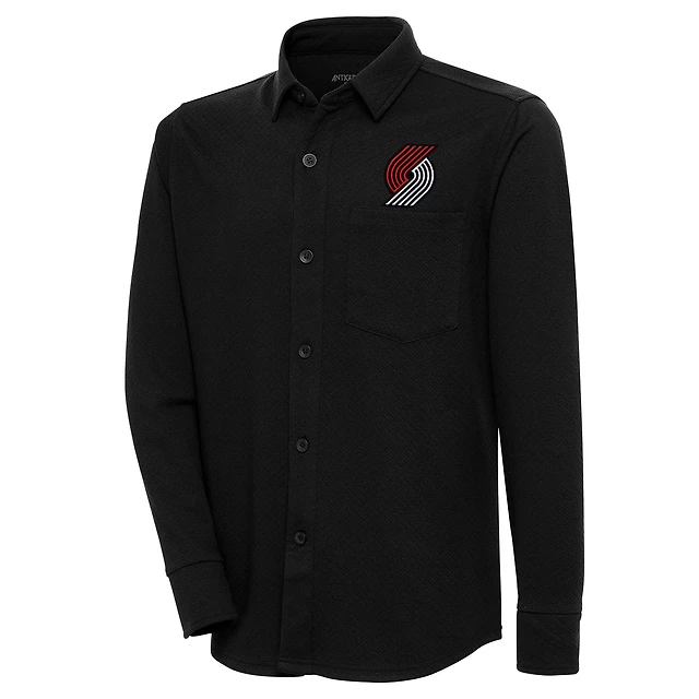 Men's Antigua Black Portland Trail Blazers Steamer Button-Up Shacket