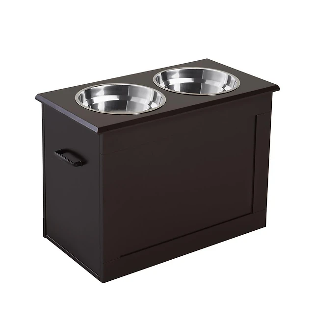 Aostirmotor 37in-l Black Elevated Dog Bowls Storage Cabinet Raised Dog Bowl Stand Feeding Station