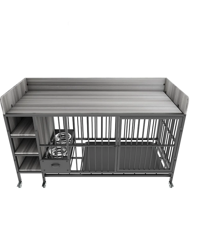 Aostirmotor Dog Crate Furniture Dog House Kennel with Drawer Indoor Small Dog Chew Proof Iron Tube