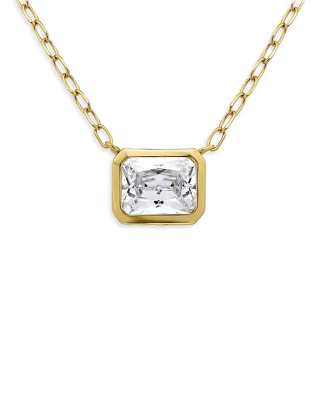 Aqua 18K Gold Over Sterling Silver Bezel Set Octagon Cubic Zirconia Necklace, 16