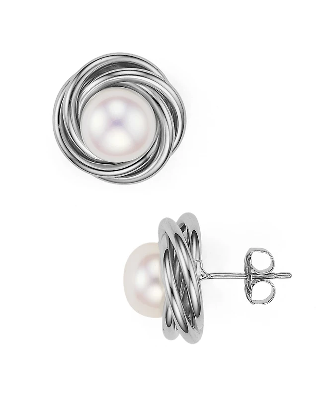 Bloomingdale's Fine Collection Sterling Silver and Cultured Freshwater Pearl Knot Stud Earrings