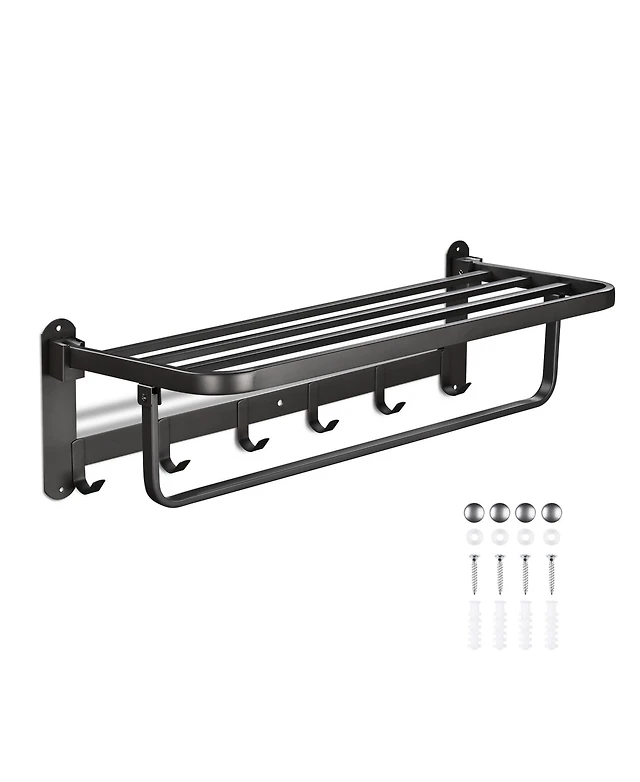 Aquaterior 23" Wall Mounted Towel Rack 2 Tier Rail Holder Storage Shelf Hook Bathroom Hotel