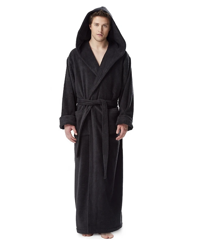 Arus Men's Thick Full Ankle Length Hooded Turkish Cotton Bathrobe