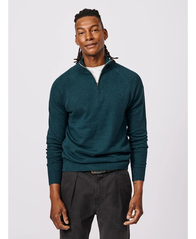 Aubin Men's Pepper Lambswool Zip Neck Sweater
