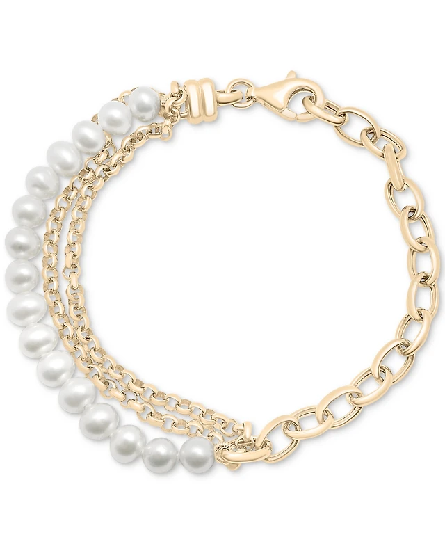Audrey by Aurate Cultured Freshwater Pearl (5mm) Triple & Single Link Bracelet in Gold Vermeil, Created for Macy's