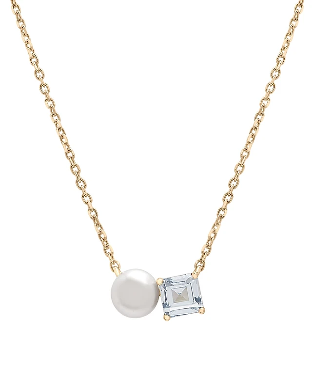 Audrey by Aurate Cultured Freshwater Pearl (5mm) & Rhodolite (5/8 ct. t.w.) Two Stone Adjustable 18" Pendant Necklace Gold Vermeil , Exclusively at