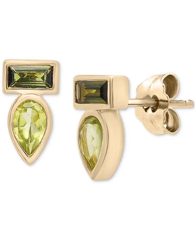 Audrey by Aurate Peridot (3/8 ct. t.w.) & Green Tourmaline (1/3 ct. t.w.) Bezel Stud Earrings in Gold Vermeil (Also available in Morganite & Pink Topa