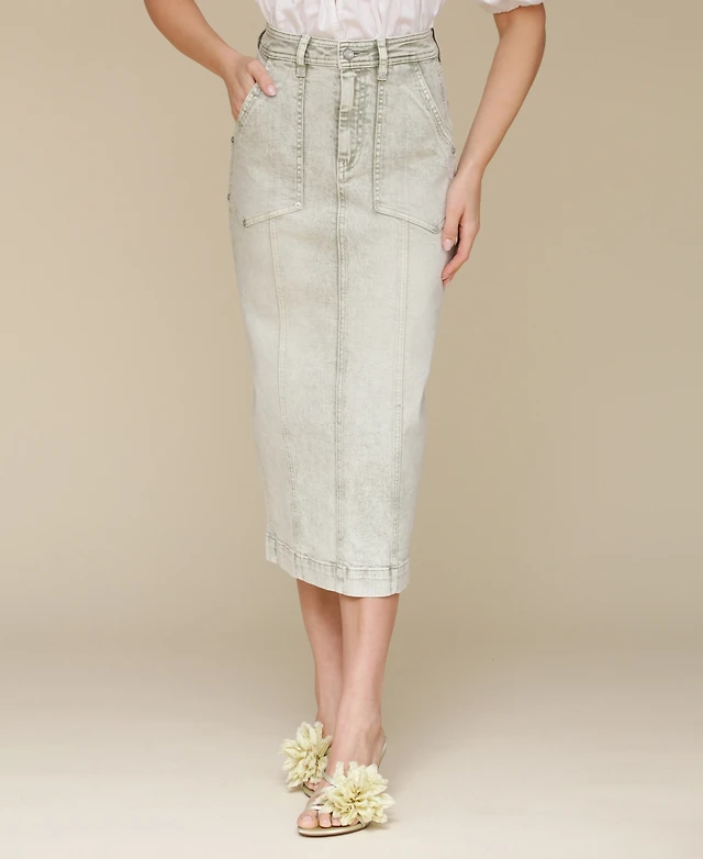 Avec Les Filles Women's Panelled Flare Denim Midi Skirt