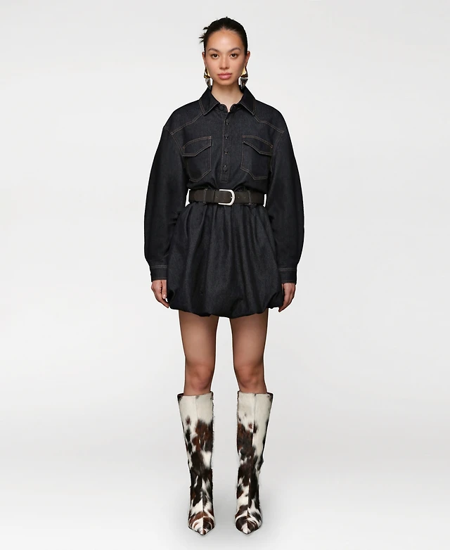 Avec Les Filles Women's Cotton Belted Puffed-Shoulder Dress