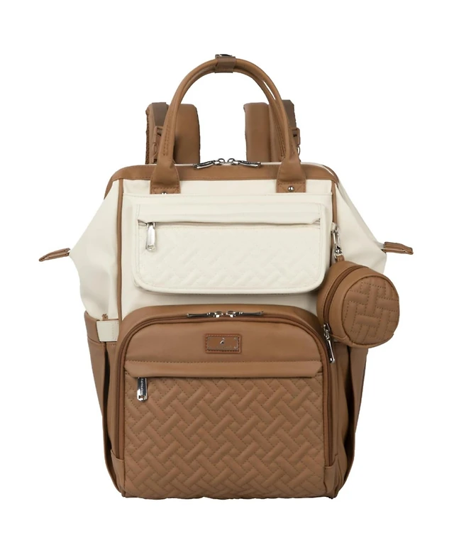 BabbleRoo Premium Faux Leather Diaper Bag Backpack Spacious & Stylish Nappy Organizer Light Brown