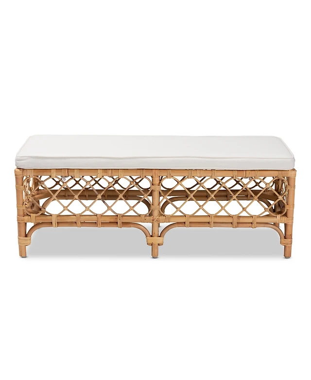 bali & pari 48" Upholstered and Natural Rattan Orchard Modern Bohemian Accent Bench