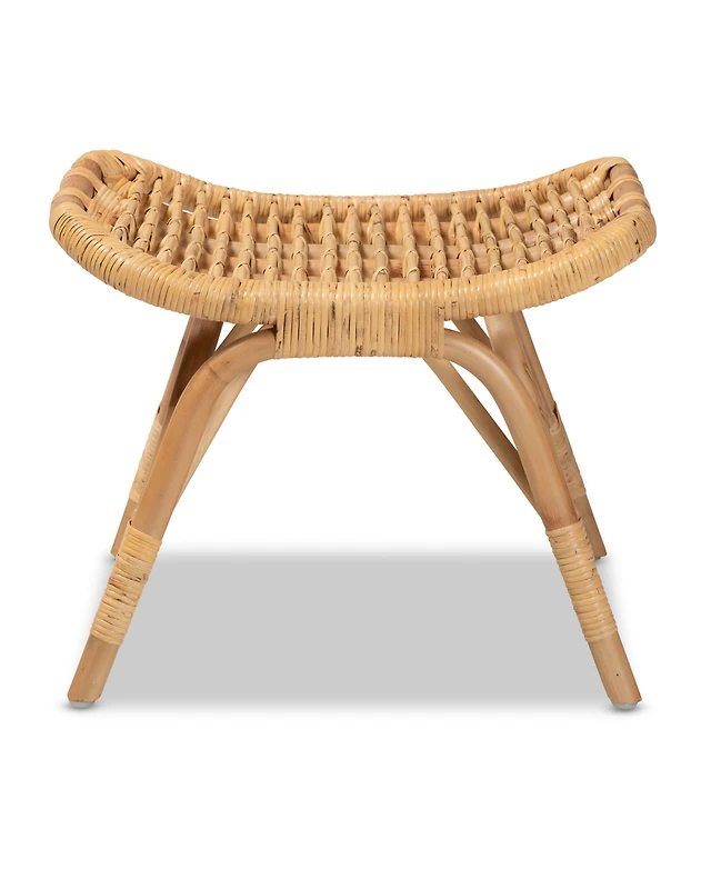 bali & pari 20.5" Natural Rattan Bernardo Modern Bohemian Ottoman