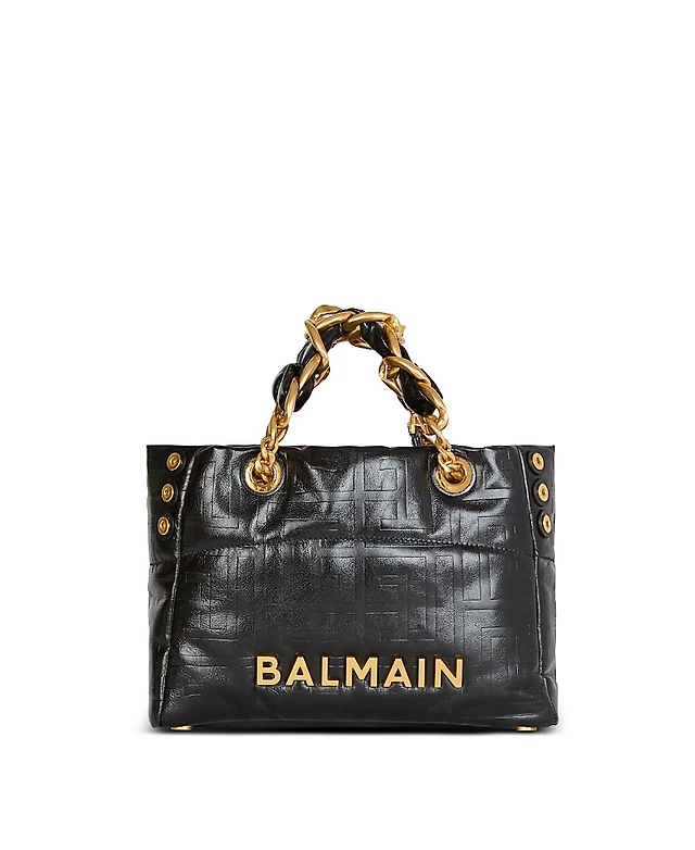 Balmain 1945 Soft Pb-Monogrammed Crinkled Leather Tote Bag