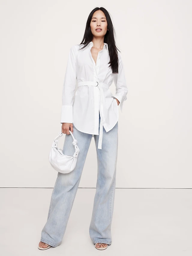 Cotton Poplin Open-Back Shirt Dress
