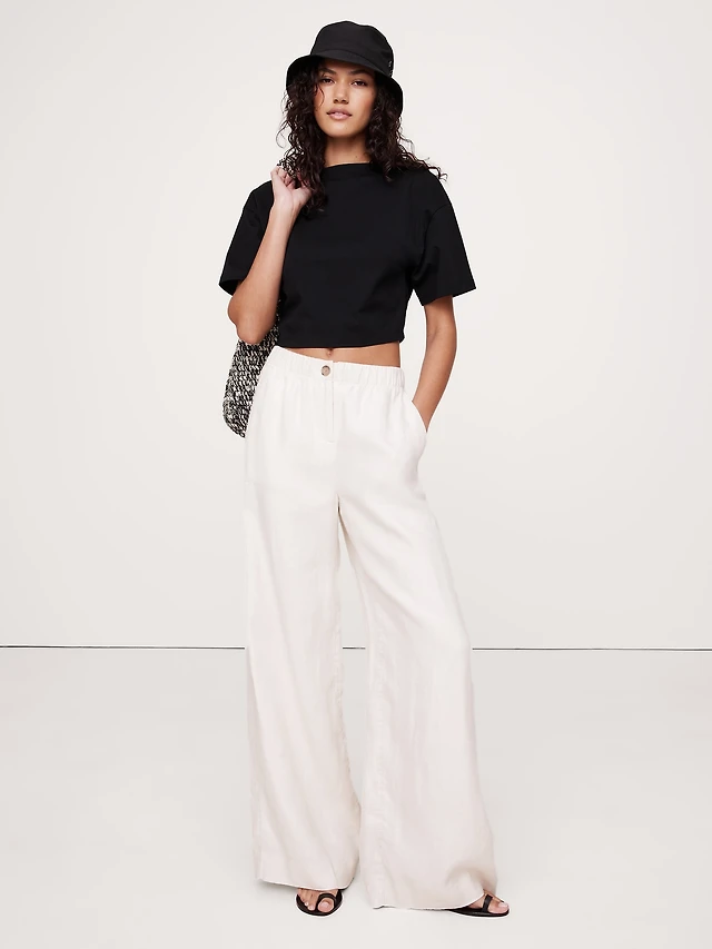 High-Rise Wide-Leg Linen Pull-On Ankle Pant