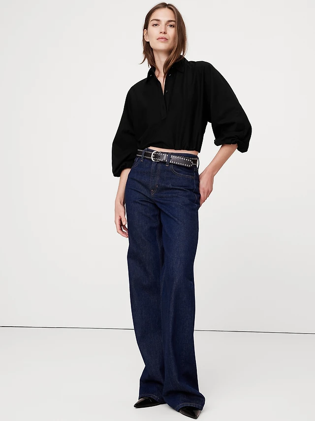 Wide-Leg Cotton Poplin Pull-On Ankle Pant