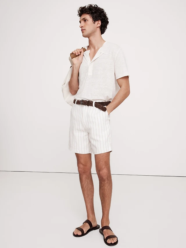9.5" Herringbone Linen-Cotton Pleated Pull-On Short
