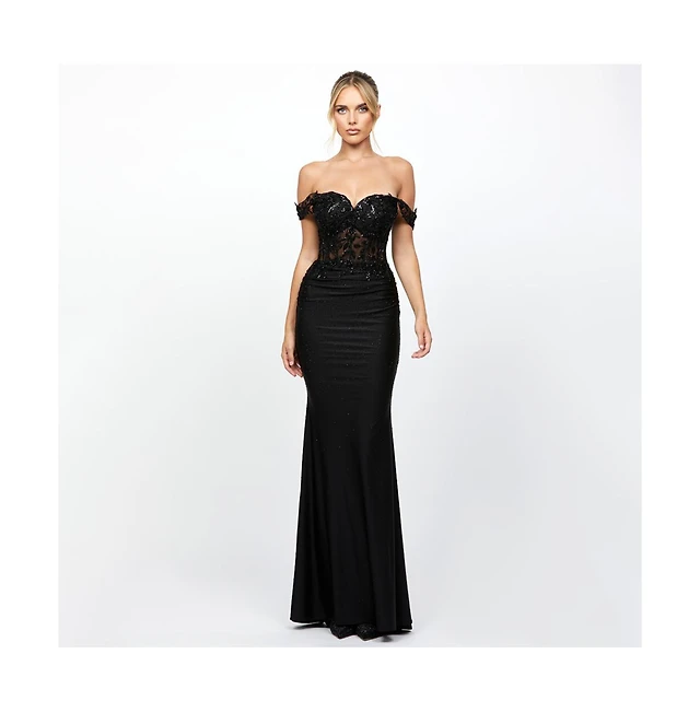 Bariano Women's Alianna Off Shoulder Glitter Gown
