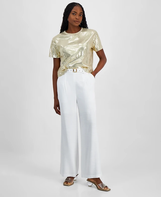 Bar Iii Women's Belted High-Rise Wide-Leg Pants, Exclusively at Macy's
