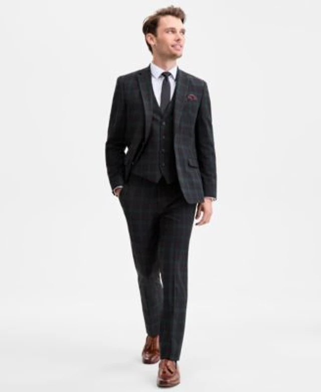 Bar Iii Mens Slim Fit Green Burgundy Plaid Vested Suit Separates Macys Exclusive