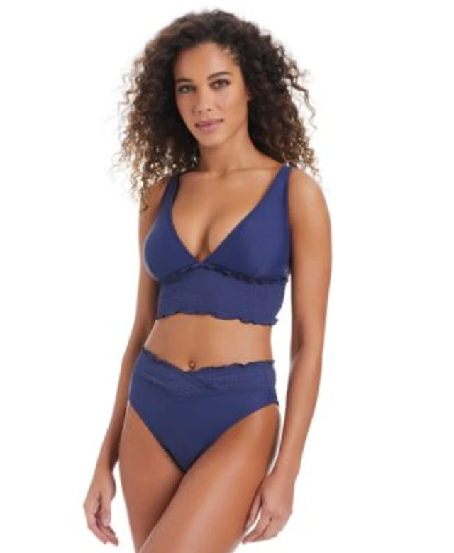 Bar Iii Womens Wave Solids Longline Bikini Top Smocked V Waist High Leg Bikini Bottoms Exclusively At Macys