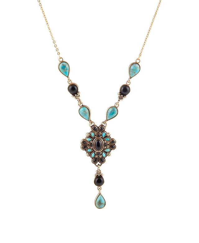 Barse Barcelona Black Onyx and Blue Turquoise Golden Y-Necklace