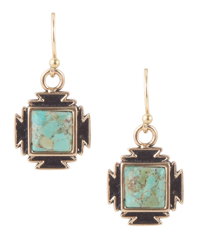 Barse Out West Bronze and Genuine Turquoise Spiny Oyster Matrix Earrings
