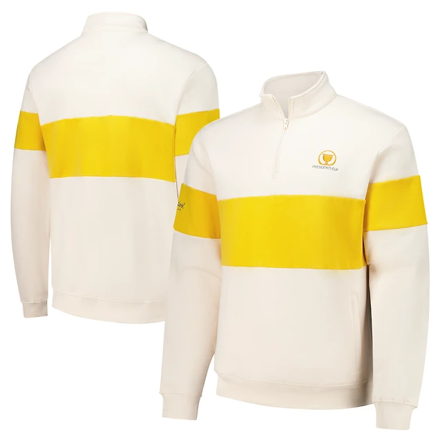 Unisex Barstool Golf x Presidents Cup Cream/Gold Collegiate Fleece Quarter-Zip Jacket
