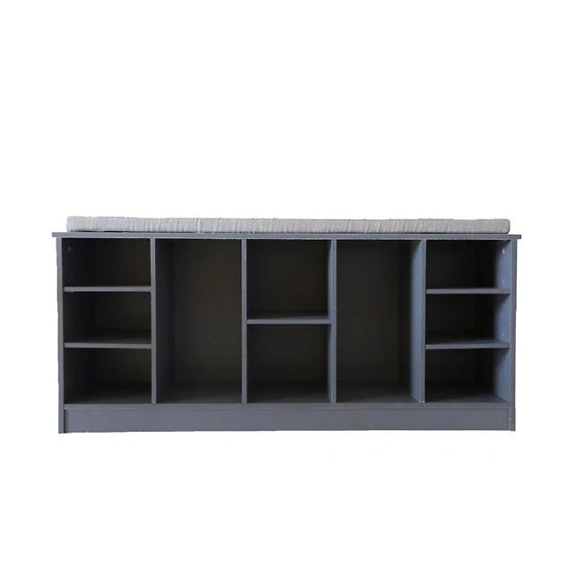Basicwise Wooden Shoe Cubicle Storage Entryway Bench with Soft Cushion for Seating